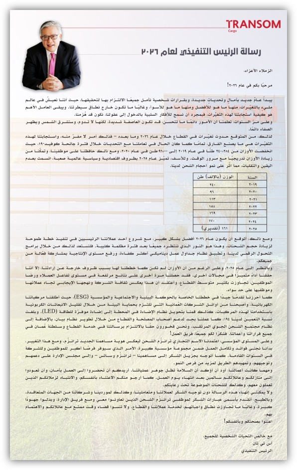 رسالة الرئيس التنفيذي للعام الجديد